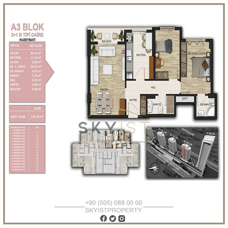 3+1 2 185-254 5,313,000 TL