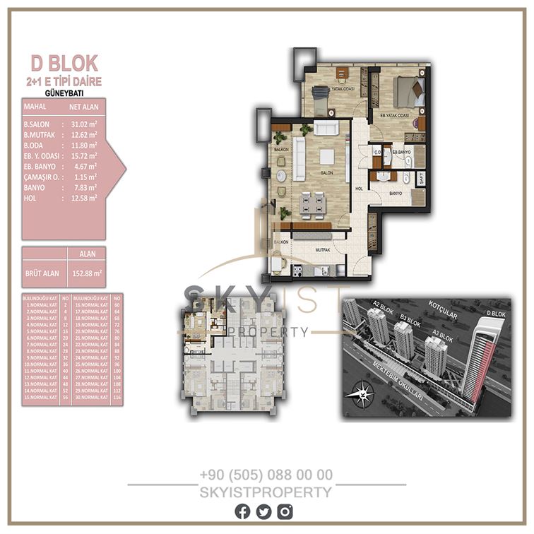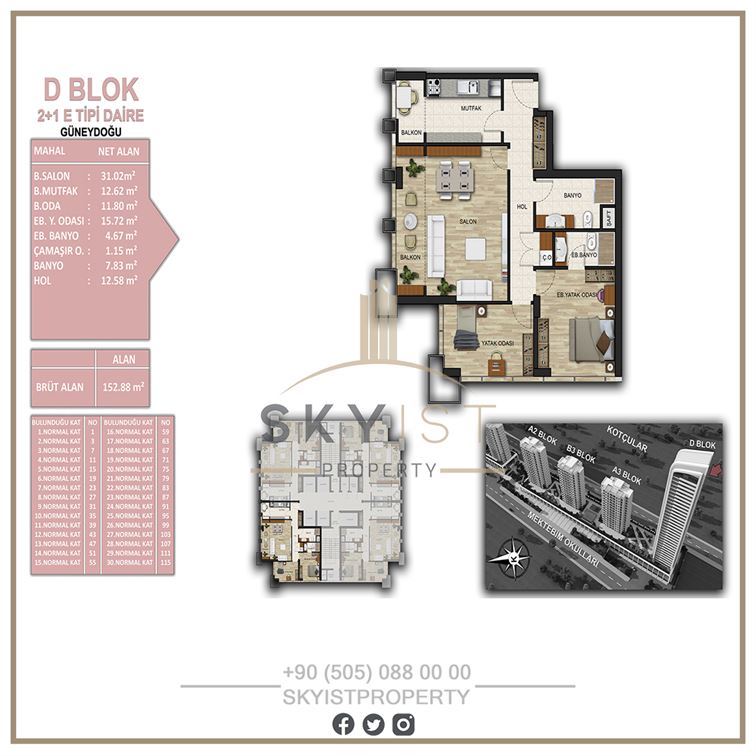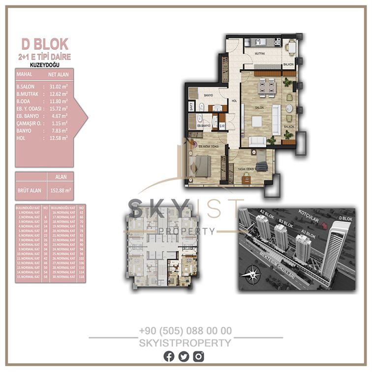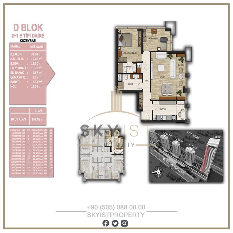 2+1 2 137-153 3,974,000 TL