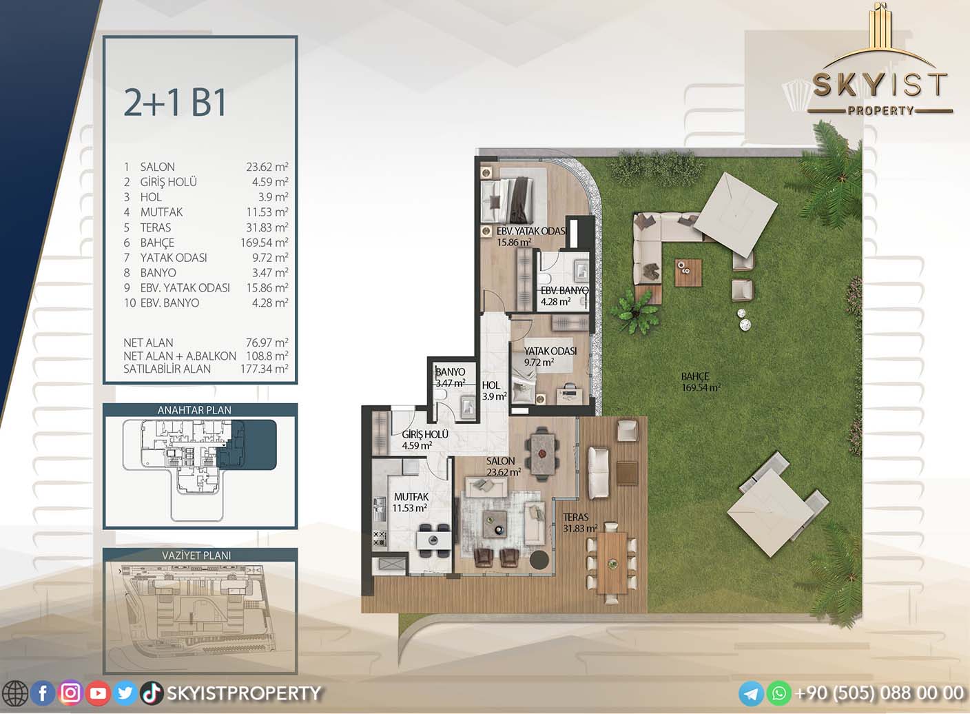 يتميز المشروع بمفهوم عائلي حيث تمتاز شققه بالمساحات المعيشية الكبيرة والشرفات والحدائق.