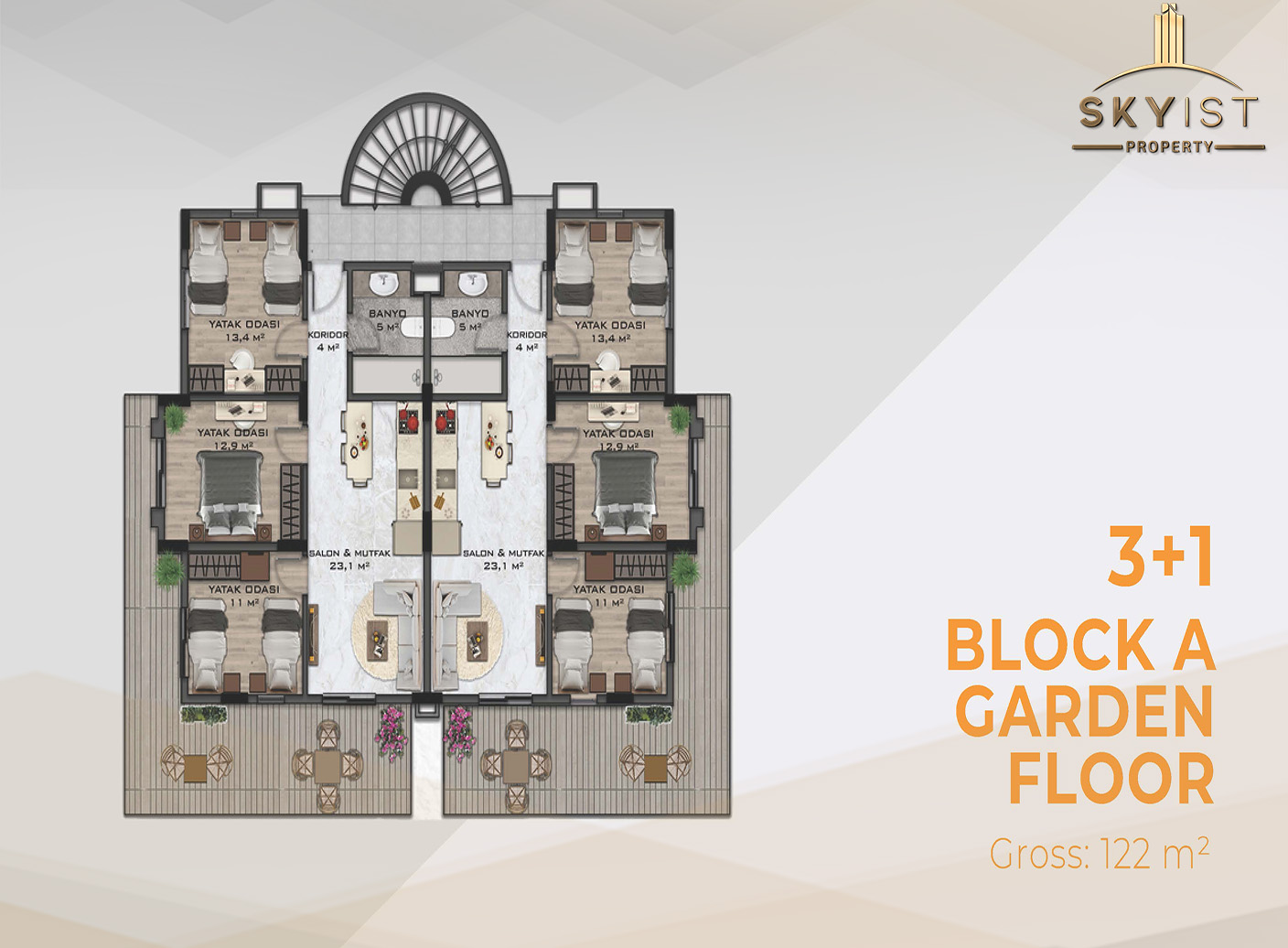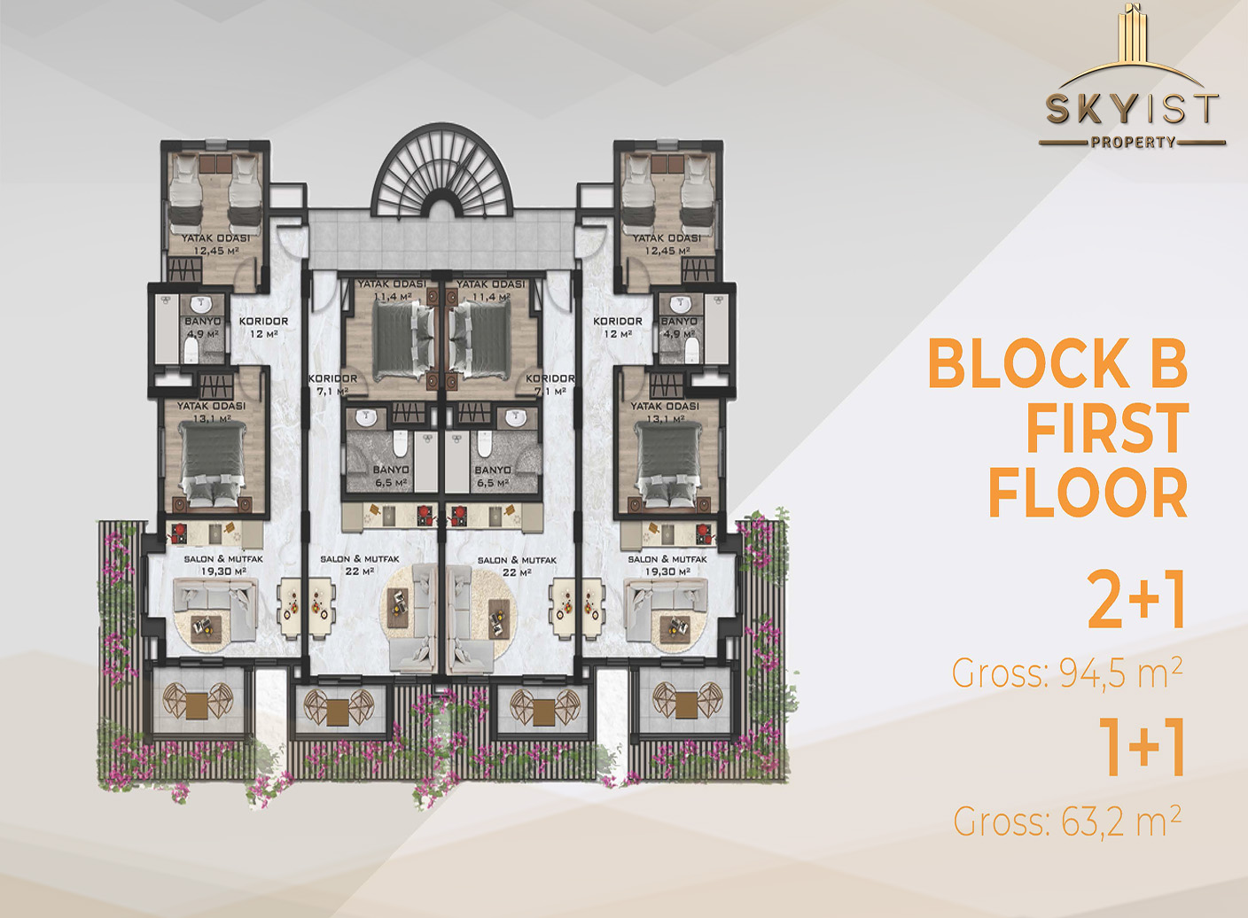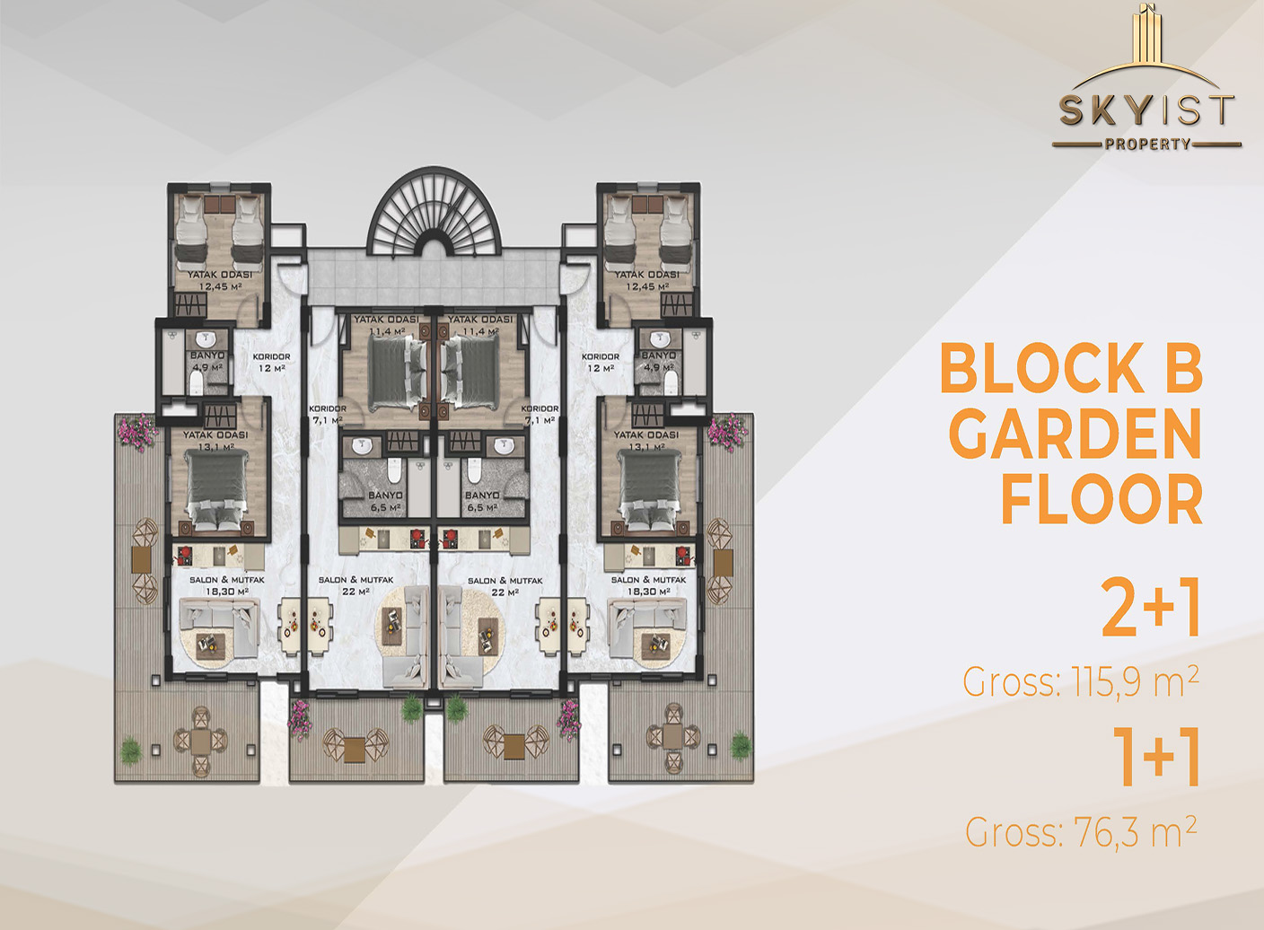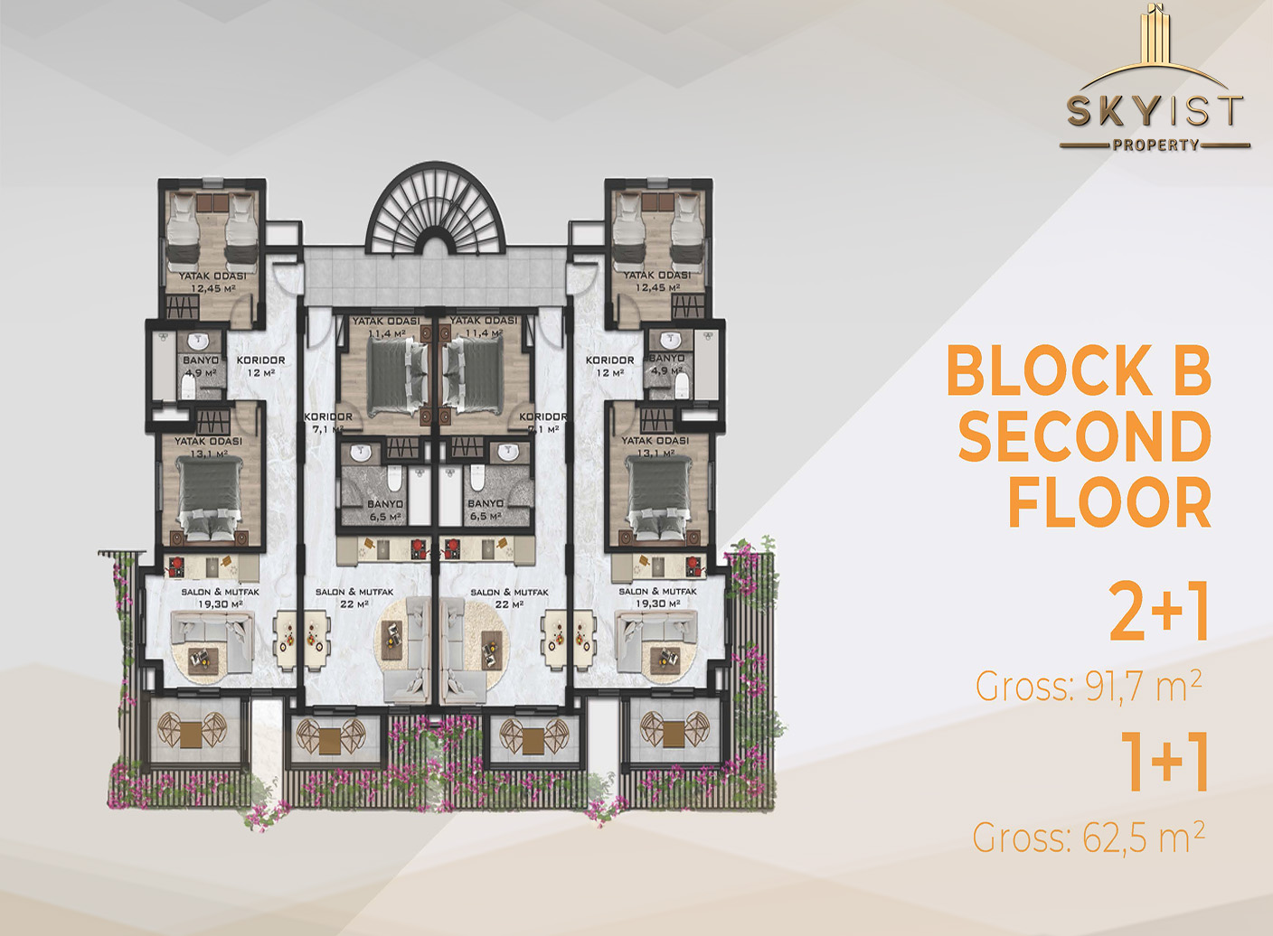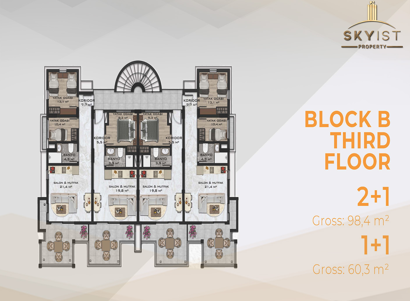 يحتوي المشروع على أنماط شقق مختلفة 1+1 / 2+1 / 3+1.
