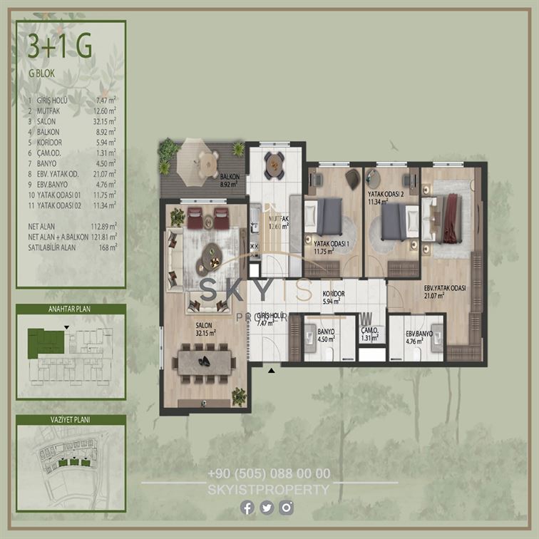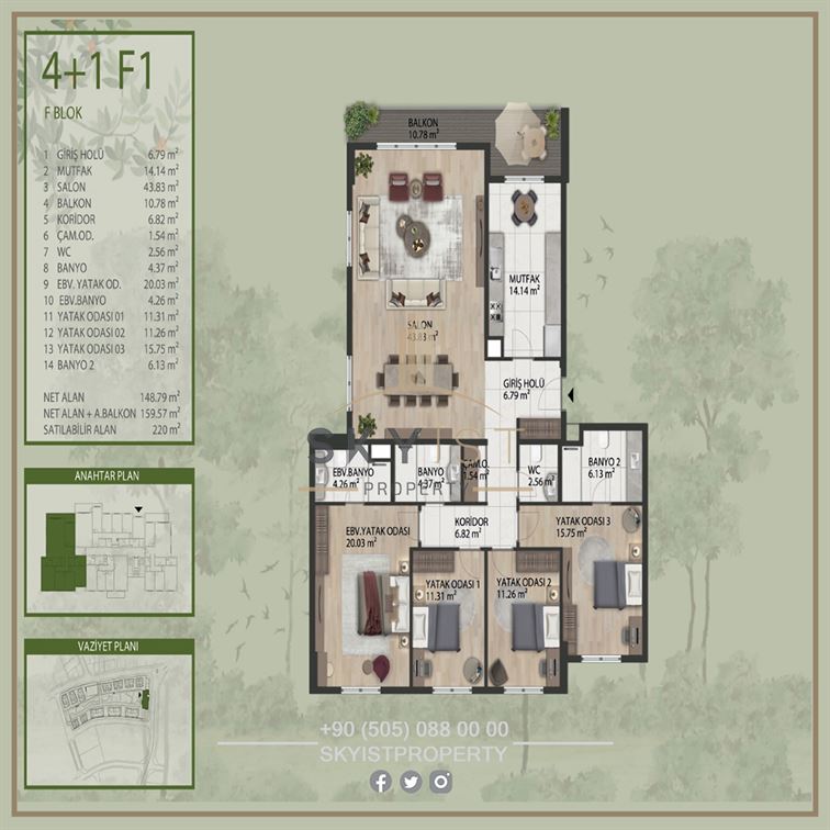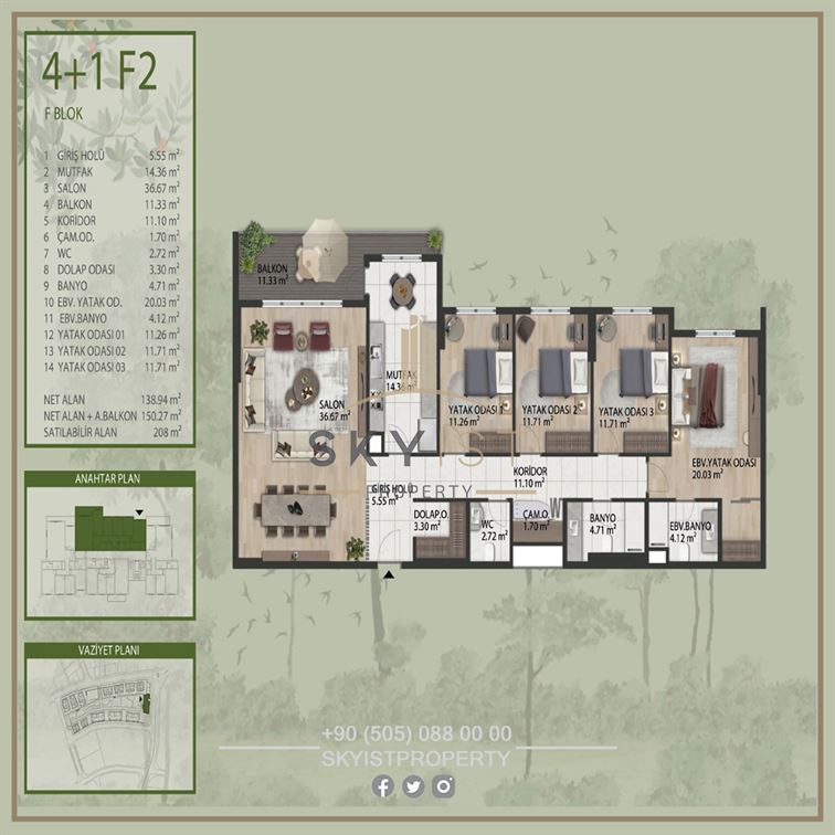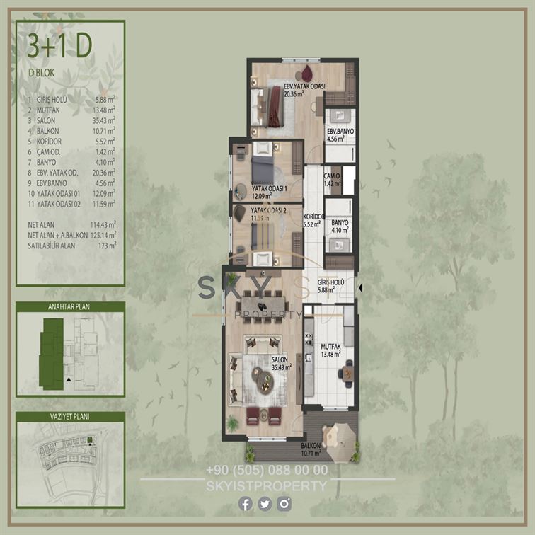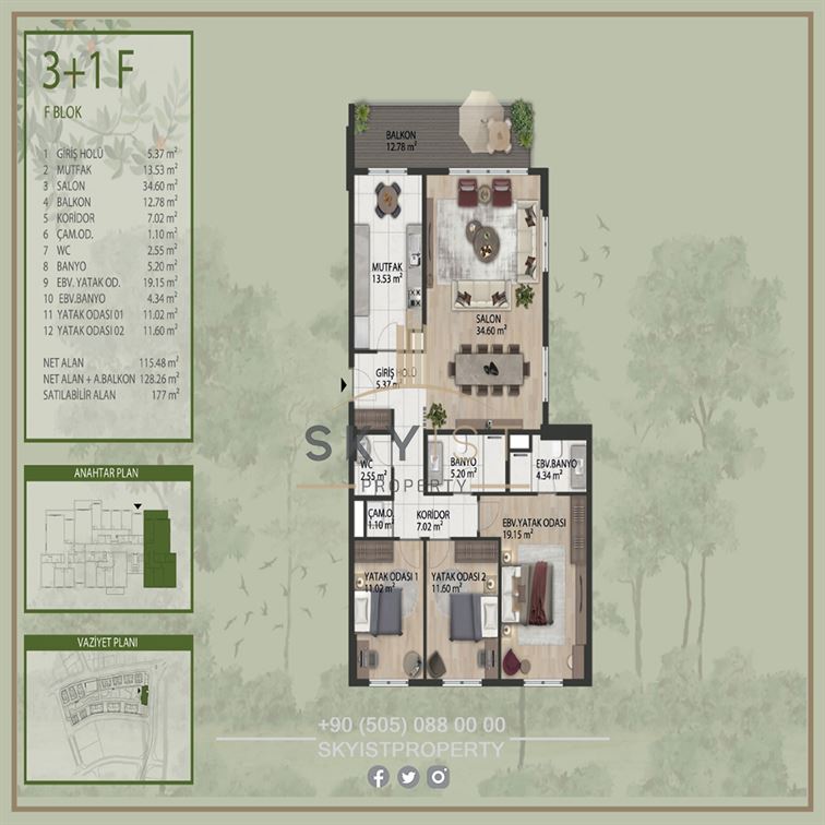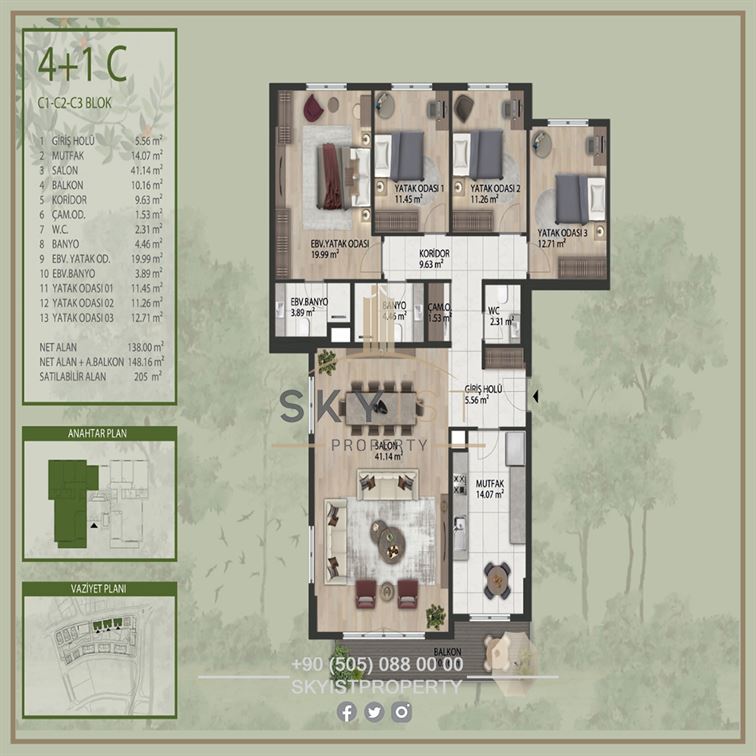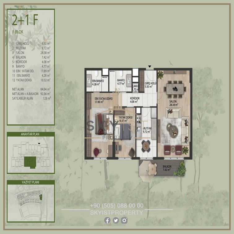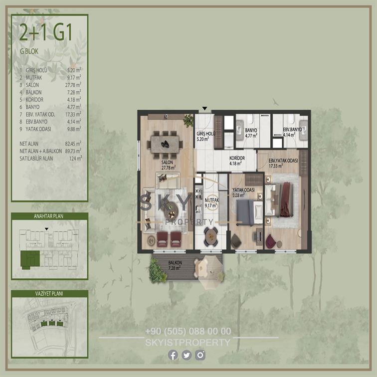 • يقدم المشروع شققاً سكنية من الأنماط 2+1 و 3+1 و 4+1 بمساحات فسيحة، مع شرفات بإطلالات خلابة على المساحات الخضراء داخل المشروع وخارجه.