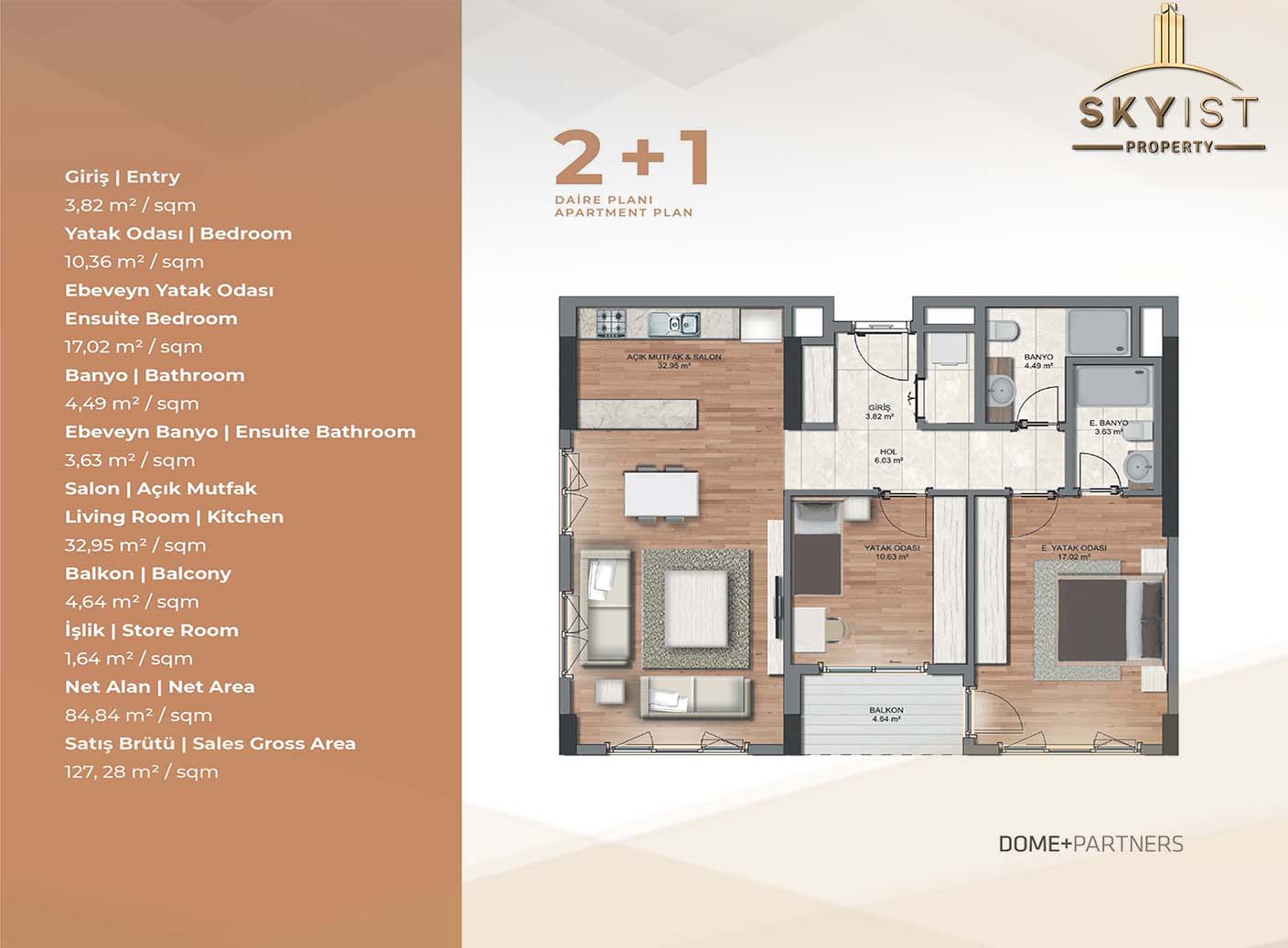 يضم المشروع  167 شقة مصممة مع وضع كل التفاصيل في الاعتبار لتعبش بسعادة عالية مع عائلتك فيها وبأنماط متعددة من 1+1  الى 1+3.