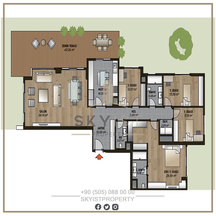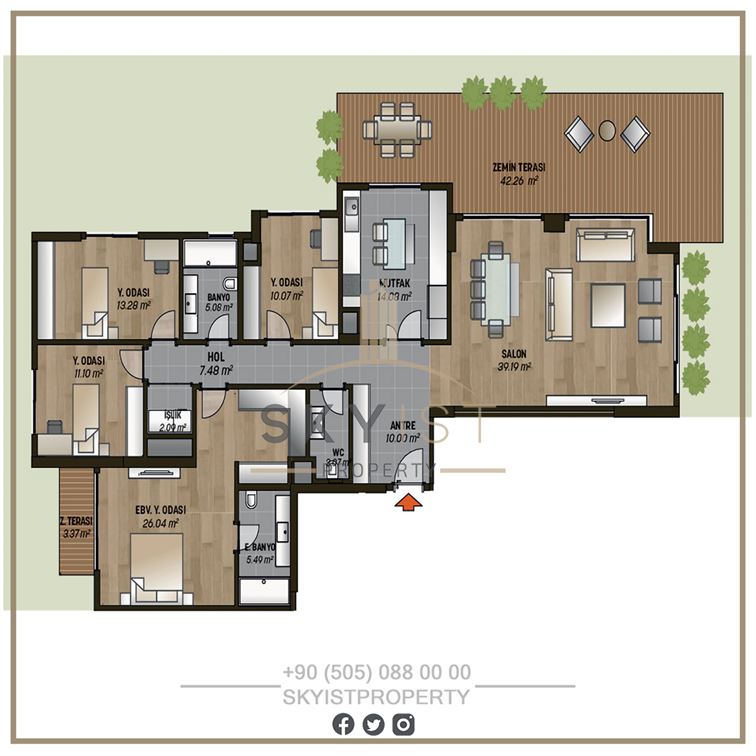 • الشقق مصممة بعناية لتوفر الراحة والرفاهية مع إقامة عائلية هانئة في أحضان الطبيعة الخضراء.