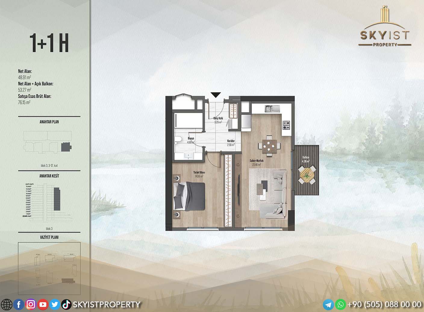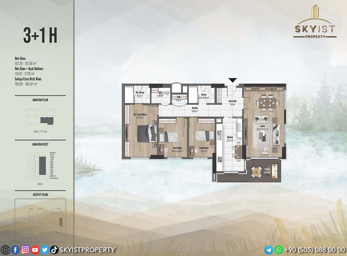مشروع استثماري سكني يقع في منطقة حيوية ضمن مركز إسطنبول في منطقة كوتشوكتشكمجة. يتمتع المشروع بموقع مميز وبالقرب من عقدة من شرايين الحياة التي تسهّل الوصول إلى كافة أنحاء المدينة، وأهمها الطريق E80. يحيط بالمشروع العديد من المراكز التجارية والأسواق والمدارس العربية والدولية. يقع المشروع على أرض مساحتها 50.000 م2 معظمها مساحات خضراء ومسطحات مائية ويتألف من 5 كتل سكنية بارتفاع طوابق من 13 الى 14 طابق. يضم المشروع 413 شقة مصممة مع وضع كل التفاصيل في الاعتبار لتعبش بسعادة عالية مع عائلتك فيها وبأنماط متعددة من 1+1 الى 1+4. يعد المشروع من المشاريع الراقية و ويتميز بالتشطيبات العصرية والفاخرة لتقديم الراحة بأعلى معاييرها. يحتوي المشروع على جميع الخدمات الاجتماعية.