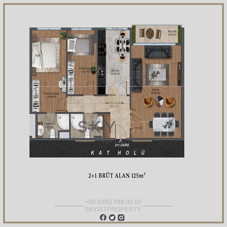 | 2+1 | 2 | 125 | 4,900,000 TL |