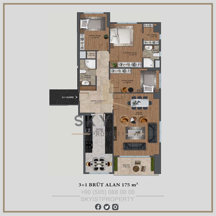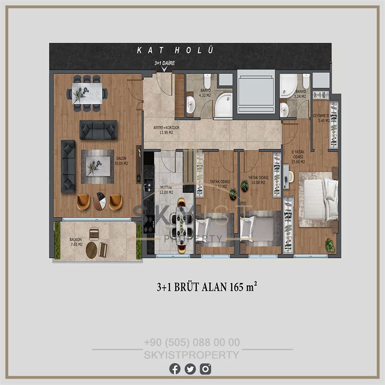 | 3+1 | 2 | 165-175 | 5,960,000 TL |