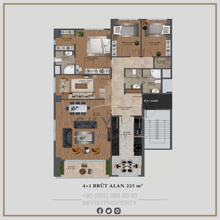 | 4+1 | 3 | 225 | 7,700,000 TL |