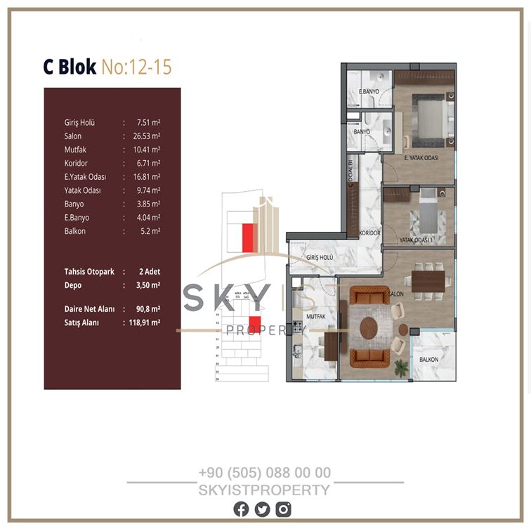 • يمتاز المشروع بمساحات للمعيشة حيث يمكنك العيش بسلام مع اسرتك مصحوبة بإطلالة على مضيق البوسفور.