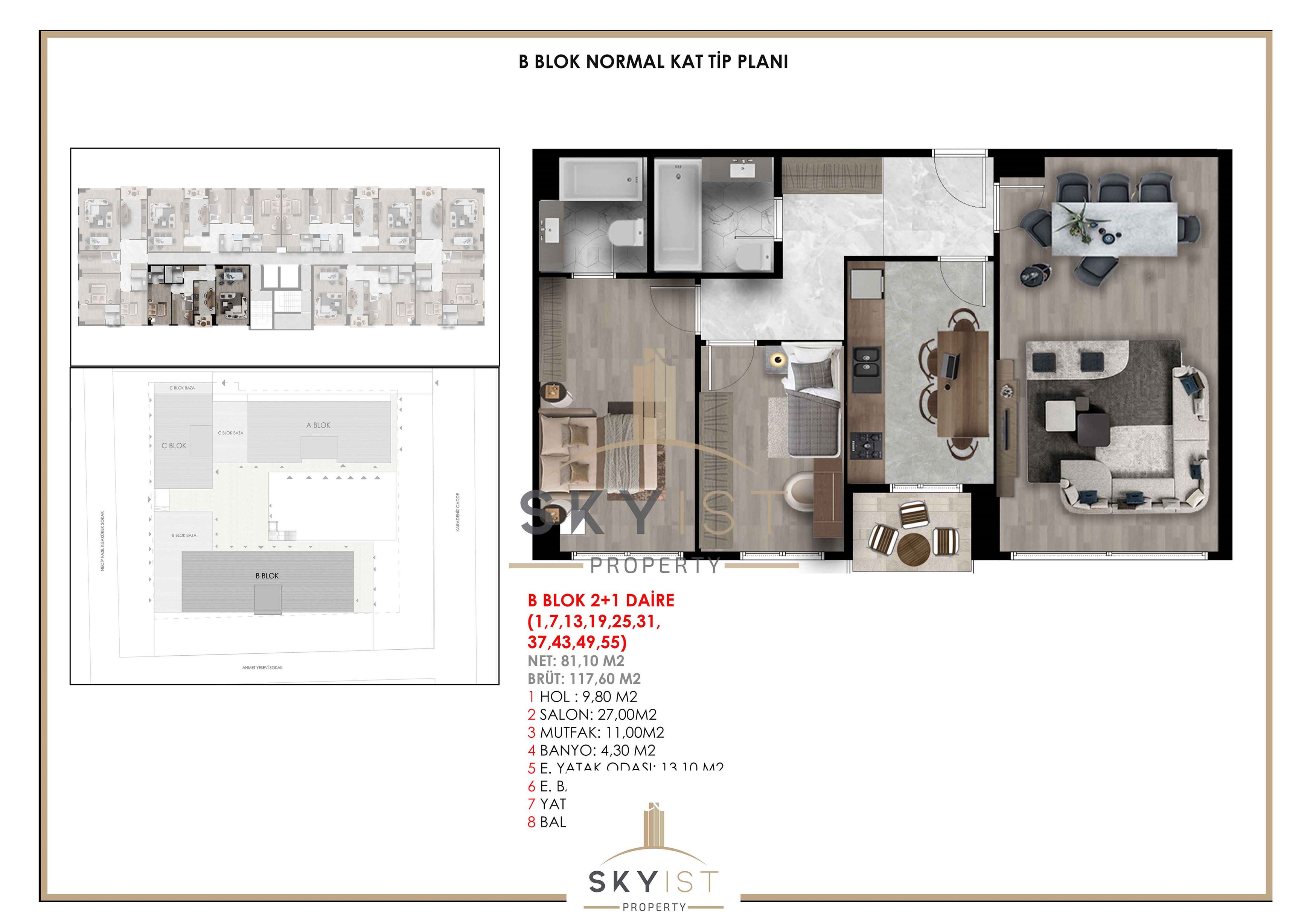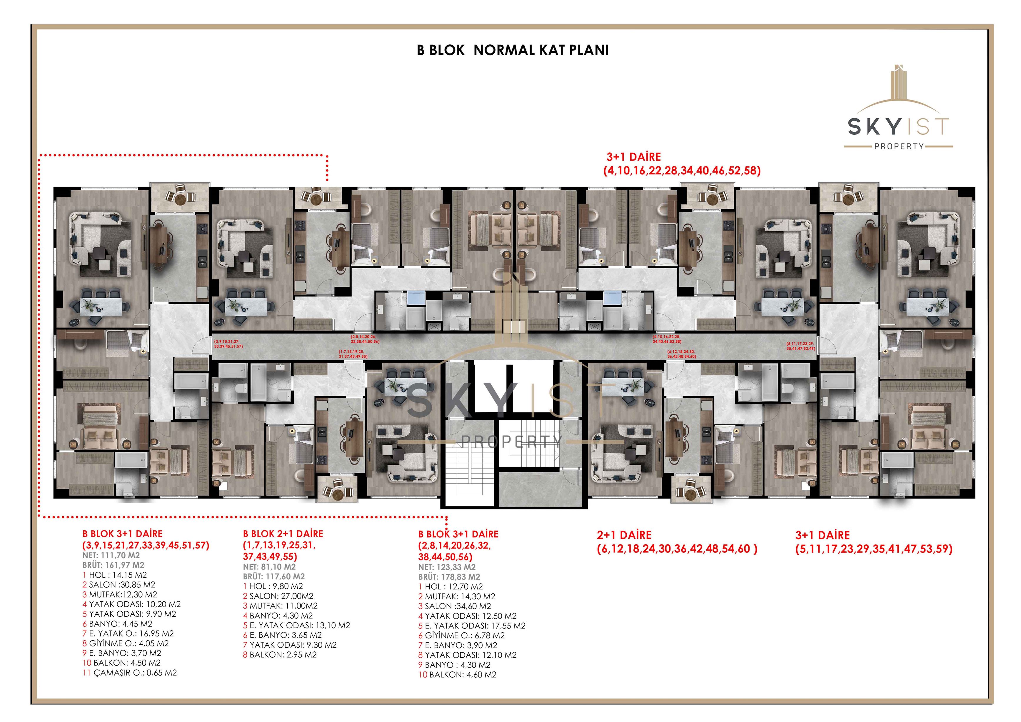 | 2+1 | 2 | 99-113 | 3,120,000 TL |