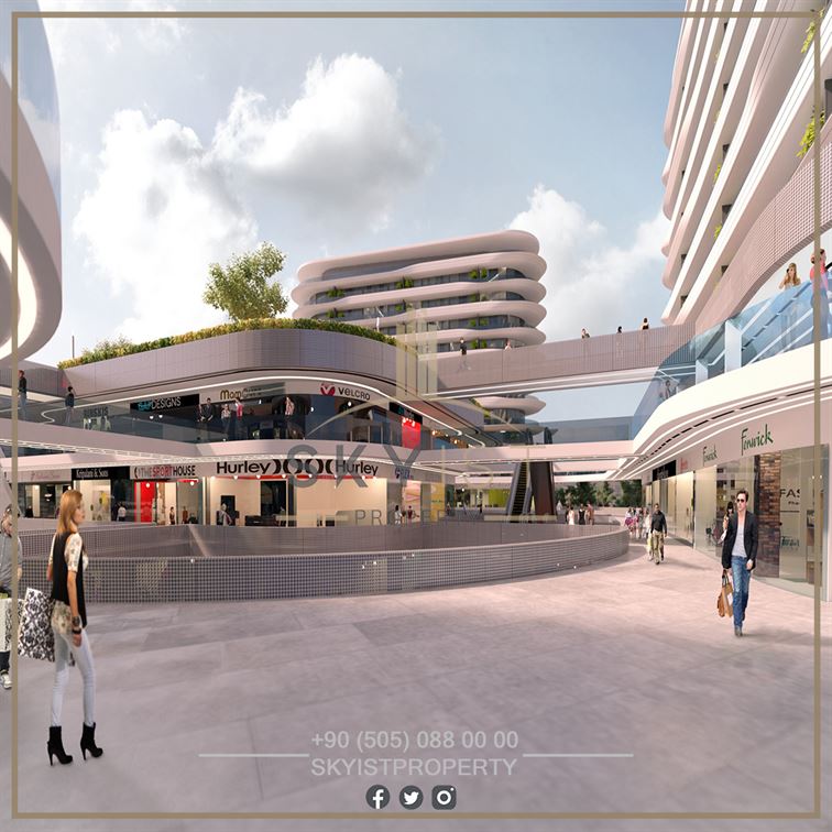 • كما يضم المشروع أسفل منه 3 طوابق تجارية، تشكِّل بمجملها مولاً تجارياً مفتوحاً.
